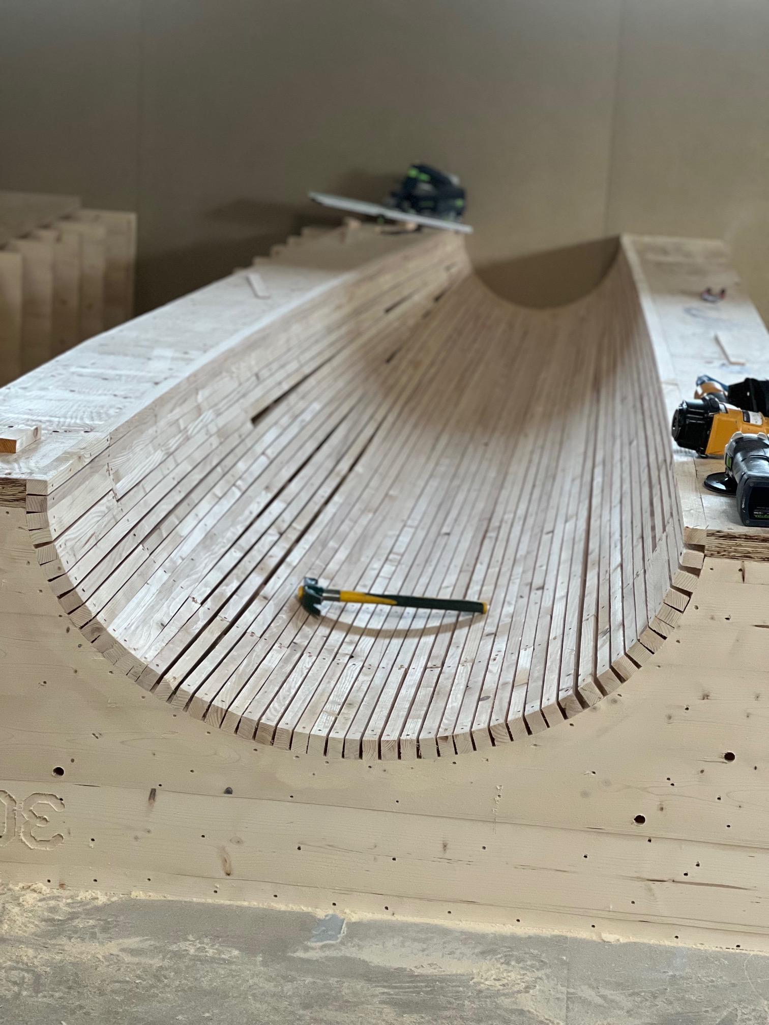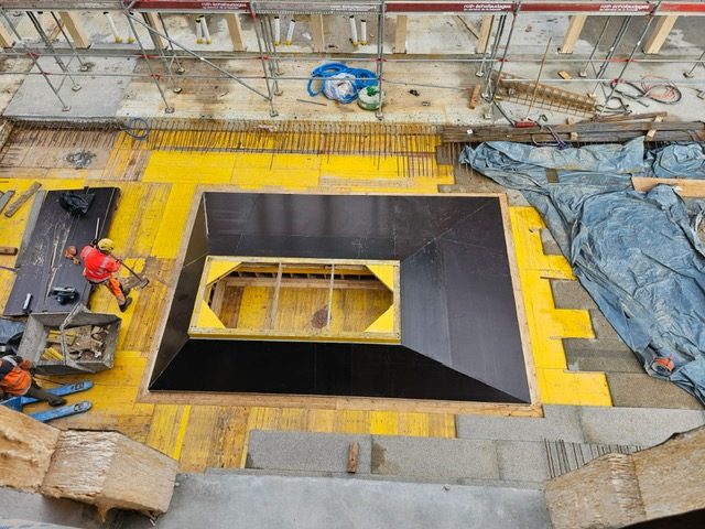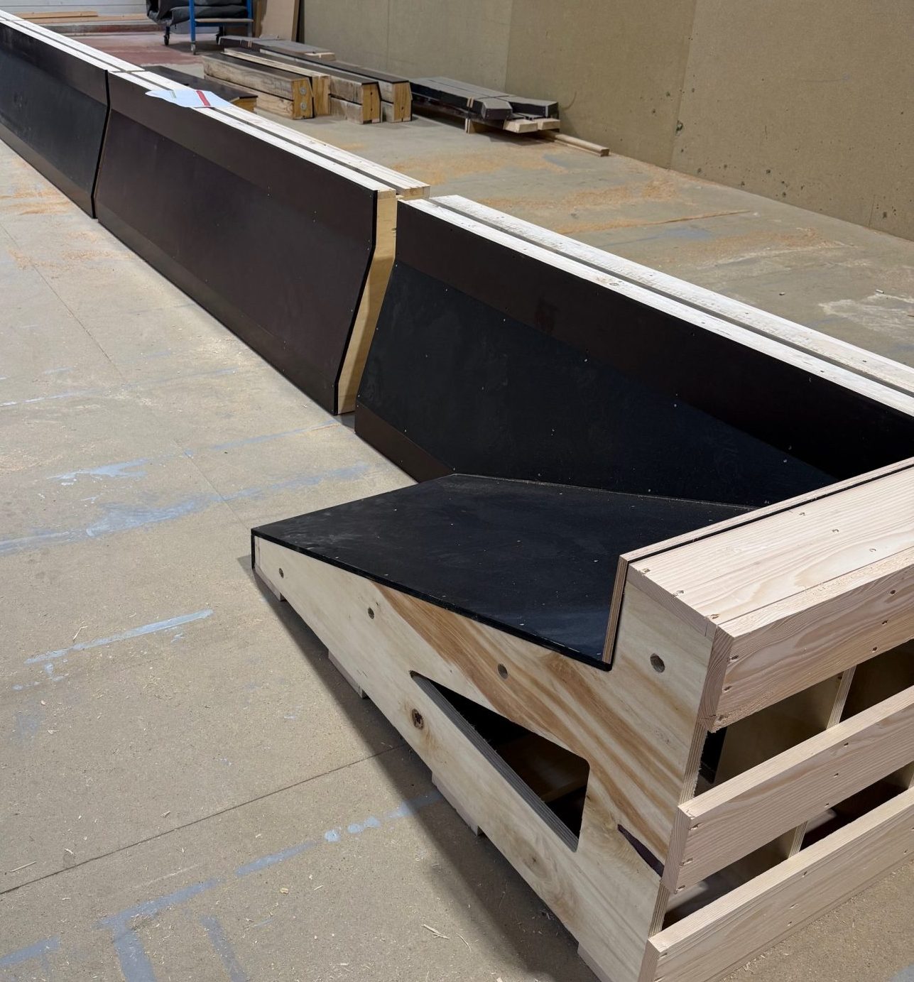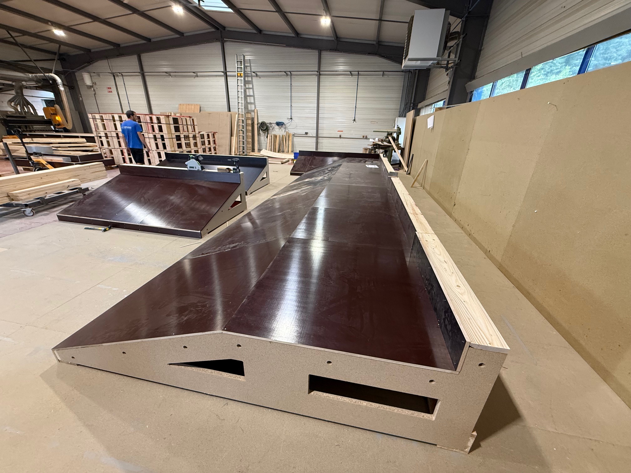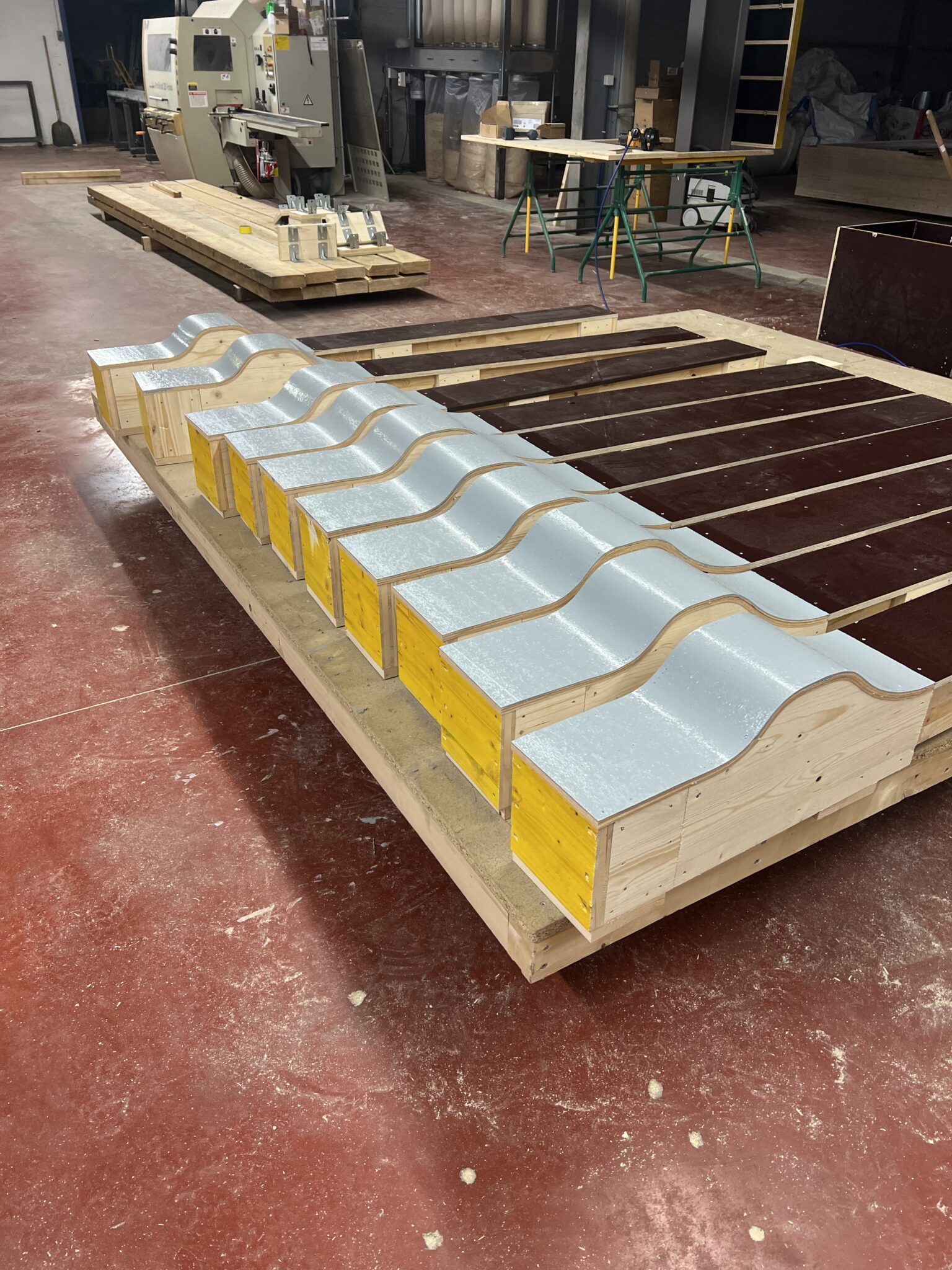 Le montage des coffrages est effectué selon les plans CAO, en respectant la géométrie et les exigences du client pour une adaptation parfaite sur le chantier.
